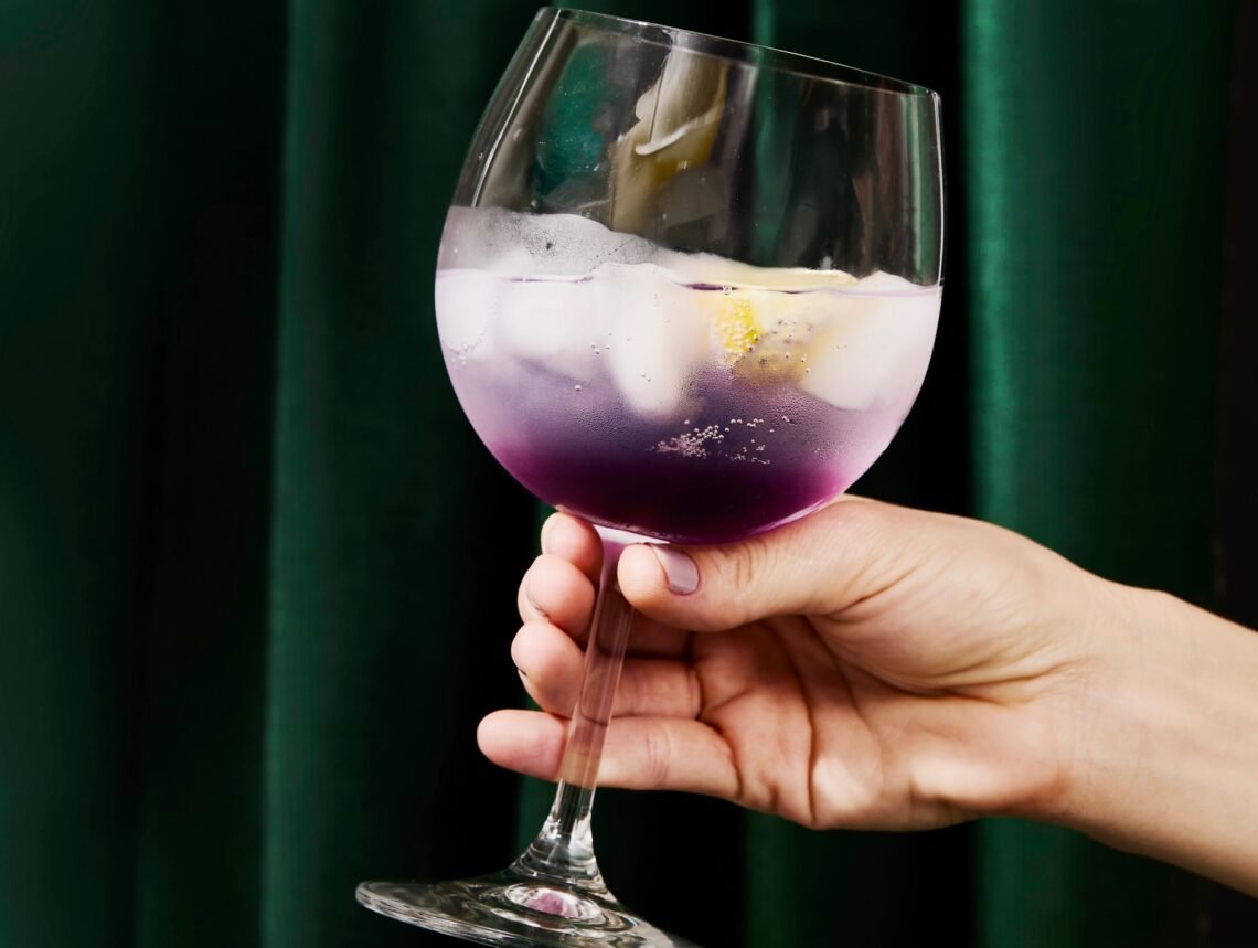 - Acrescente o borbulhante de caju e a água tônica delicadamente.